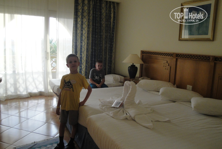 Посетили данный отель с 23 по 30 марта 2015г. семьей с двумя детьми (6 и 9 лет). Прилетели, до отеля ехали от аэропорта Хургады минут 30, с учетом заезда еще в 2 отеля. В сам отель прибыли часов в 19. Нам сразу предложили сок каркаде, заселили минут через 10 в оплаченный нами номер-стандарт. Он находился на 2-м этаже основного здания, с видом на бассейн-джакузи и кусочек моря. В номере было все необходимое, все работало, нас все устроило и мы не захотели его менять.