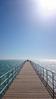 Для любителей вечерних прогулок вдоль пляжа - пирс отеля не достроен (да, да, все еще), пирсы у соседних имеются, перед ужином (ужин с 19) в один из вечером гуляли по тому, что слева от нашего, если лицом к морю стоять, этот пирс, я так поняла, платный, но собирающие дань арабы (стояли в конце пирса за еще одним самодельным шлагбаумом) заколебались, видимо, ждать пока мы наглазеемся на закат и какие-то движения в воде, поэтому пошли на сушу навстречу нам, а мы благополучно дошли до конца пирса (длинный!не знаю сколько метров) и поглазели еще на торчащие из воды трубы (в одном из коментов читала, что это затонувший корабль, к которому подвозят туристов... что ж, досадно за наших туристов, потративших на это свои деньги). На обратном пути никто с оружием нас не поджидал, темную нам не устроили, благополучно дошли до гостиницы со своими 5 баксами :)
