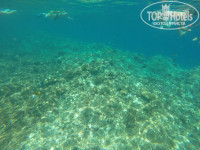 На пляже свободно, лежаков навалом. Вход в море - песок. Утром - отлив, иногда очень мелко, но для детей самое то. Несмотря на ветер волн нет. Вода теплая. Рыбок мало, периодически плавала другая морская живность. В общем кто с детьми - самое то.
