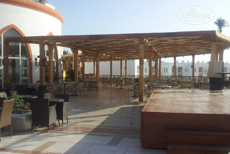 Ещё свежи воспоминания об отеле, начинаю писать. Отдыхали в отеле с 2 по 10 апреля 2015 года. Первое впечатление - разочарование. Номер 1119, на 1 этаже. Корпус очень удачно расположен и к морю и к главному ресторану, одинаковое расстояние проходишь, минуты три ходьбы. Сам номер требует срочного ремонта. Особенно ванная комната, ужасный душ, плитка. Однажды утром на полу нашли кукарачу( т.е. таракана), лежал на полу на спинке, дергал ножками. Ладно, подумала я, значит в отеле травят тараканов - это плюс. Мебель старая, скрипучая. Номер менять не стали из-за удачного расположения. Каждый день оставляли уборщику $ полы мыл только в ванной, в комнате не мыл, лебедей не крутил. Пляж ступенчатый. Мы каждый день занимали лежаки на пляже, где пантон. На нем обычно полно народу, на других трёх пляжах полно свободных лежаков . Полотенца по карточкам, получаешь сразу по приезду, но есть одно но, их поменять можно только в 5 часов вечера. Мы полотенца оставляли на лежаках, шли на обед, возвращались на пляж, где- то в 15 часов шли в номер, полотенца на смену не берут, спрашивают : "вы что уезжаете?" . Море по приезду было холодное, волны, пантон ходил ходуном. Дня через три уже не так штормило, но мы всё равно купались, уж больно красивый риф. Обязательно берите маску, рыбы, розовые медузы, я их брала в руку не жалят. Ресторана всё включено два- итальянский "San Marino" и " Half Moon". Многие не знают что можно пользоваться двумя ресторанами. Мы например чередовали ужин, то в итальянском, то в другом главном. Нам нравилось ужинать в итальянском, открытая терасса, какая-то камерная обстановка., добряк шеф- повар. Еда - голодными не останитесь. По приготовлению кур они мастера. Фаршированные рисом, зеленью, кордон блю. Рыба вкусная, говядина жевалась. Один раз давали арбуз, два раза клубнику, также были финики, физалис, персики,апельсины,грейфрут. Про сладкое писать не буду, оно у них всегда на высоте. На пляже есть ресторан, где можно с 12-17 часов покушать - пицца, паста, овощи, рыба в кляре,мороженое. Мы иногда брали тарелки с едой и на свои лежаки. Анимация - ничего нового не увидели. Всё как всегда - зарядка, боча, латино,аквааэробика. Вечернее представление также - акробаты,факир шоу, мистер и мисс отель. В отеле две команды аниматоров- итальянская и интернациональная. Мы по привычке пошли в амфитеатр- а там одни итальянцы и анимация на итальянском. Наша анимация проходит на террассе главного ресторана. Во время нашего прибывания построили новую сцену и бар на терассе. Также в отели строят аквапарк. Но строительство аквапарка мы обнаружили где-то на 4-ый день пребывания, т.к. жили с другой стороны от ресепшена. Еще хотелось бы, чтобы поставили холодильники с водой в открытом доступе. А не бегать каждый раз за бутылками в лобби- бар. Т.к. в барах на улице вода в кулерах. Еще очень большой плюс отеля, что не далеко от него расположен квартал магазинов El Mercato и 1001 ночь. Есть куда прогуляться. Из отеля выходите и налево по дороге. Дойдёте до отеля Роял Гранд, а затем направо по дороге, 10 минут ходьбы и вы в городе. Наверно мы в этот отель больше не поедем. Уж больно вечером хотелось в соседний отель, из которого лилась зажигательная музыка и русскоязычные песни. P.S. Забала написать про W-F. Интернет есть. В лобби и на терассе, у нас три дня ловил даже в номере, а также по утрам на пляже. Когда запрашивают пароль введит