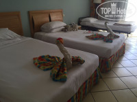 Собрались отдыхать спонтанно, отель выбирали друзья, так что ехали, можно сказать, с закрытыми глазами(открыла отзывы-увидела кучу негатива-закрыла). Один из самых больших плюсов-это расположение отеля: 7-8 минут пешком до Сохо, 10-15 на такси(автобусе) до аэропорта. Заселили нас быстро, guest relation Юлия провела небольшую экскурсию по территории, показала нам что где находится. Номер был с видом на море. Первый корпус, прямо под открытой площадкой ресторана(комната 1603). Так как дверь была третья по счету от лестницы, то чтобы подняться в ресторан нужно было пройти 1 пролет. В номере не было ничего сверхъестественного: шкаф-купе с сейфом, ванная, оборудованная минималистически, но со всем необходимым, зеркало, столик, три кровати, тумбочки. Освещение, как и во всех отелях Египта, мрачновато. На балконе стульчики, стол. Все стандартно, в общем. Уборкой мы довольны: нам регулярно какие-то фигурки делали, с цветами и т д...