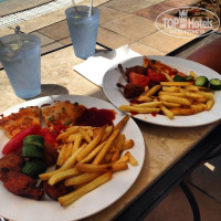 Всегда в баре у бассейна днем мороженое, в лобби баре можно взять орешки или чипсы к пиву. В баре у бассейна можно пообедать, перекусить. Есть итальянский ресторан, он находится в самом конце отеля, там можно поужинать на улице, упор на пасту. Брали красное вино - вкусное.