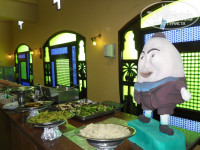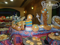 В ресторане кормят вкусно и разнообразно. Бывают тематические дни: красивое оформление на пасху и на мусульманские праздники. Мясо (курица, говядина), рыба в различных вариантах всегда приготовлены очень вкусно. Супы, омлет, картошка, рис, макароны. Помидоры, огурцы, болгарский перец, капуста, зелень нарезаны отдельно и в салатах. Каждый день были апельсины, мандарины, часто дыни, финики, гуава, иногда арбуз. Автомат с растворимыми напитками, чай, кофе. Есть мини-бар. Напитки из бара как алкогольные, так и безалкогольные во время обеда и ужина можно взять и принести на свой столик самостоятельно (в некоторых отелях из этого делают искусственную проблему).