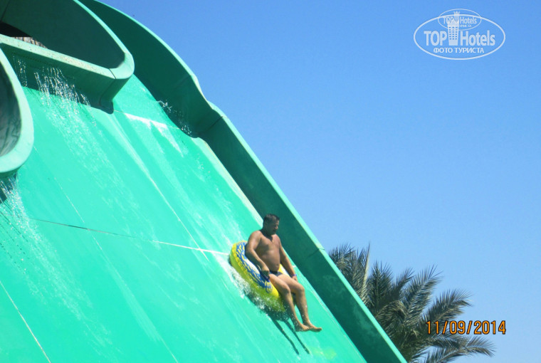 Отдыхали в этом отеле вдвоем в сентябре прошлого года.Начну по порядку,прилетели утром,заселили в номер только в 13 час,это конечно минус,потому как пришлось сидеть в холле 3 часа.Заселили нас в подкову,на 2 этаж,номер нам достался не очень,но менять не стали,мы же не в номере сидеть приехали,мебель старенькая,к слову в соседних номерах шел ремонт,меняли телевизоры ,мебель,так что может быть там все уже лучше)))не работал только сейф,но все быстро исправили.Убирали хорошо.По поводу питания,мы видимо не особо привередливы,так что нам хватало,выпечка изумительная,по остальной еде не скажу,что ее прям огромный выбор ,но всегда можно было найти что-то на свой вкус,единственное,маловато фруктов(была зеленая дыня,груши,финики,выжатые апельсины и зеленые бананы да и все наверное)не голодали мы точно.Персонал вежливый,в ресторане чисто ,ничего не валяется)Территория отеля большая,ухоженная.Горки,конечно супер,катались каждый день с утра,до обеда))плохо,что аквапарк открыт для всех и поэтому уже часам к 11 становится очень много народу,приходится подолгу стоять в очереди,но оно того стоит)))да и работают горки до 17час.Конечно,после такого наплыва желающих вода в бассейнах уже не очень,а с утра она очень чистая.После заката нельзя купаться в бассейнах,не знаю почему,а хотелось бы).На пляж можно ехать на автобусе(ходит часто)с кондиционером ,можно пройти пешком,это недалеко,заход в воду хороший,можно без тапок.Рядом дикий пляж где мы плавали с маской и любовались рыбками и кораллами,их там очень много !!!Незабываемые впечатления!!!Кстати маски и тапки лучше купить в магазине или на рынке,торговец на пляже очень неприятный,и дороже раза в 3.А в целом отдых удался)