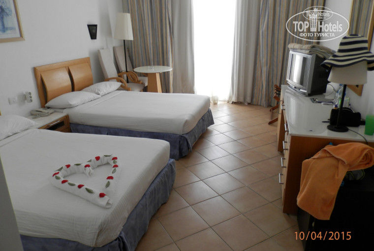 Отдыхали с 9 по 19 апреля 2015 года парой. Встреча в аэропорту, трансфер (Библио Глобус - Альс Тур), размещение нормально. Нас очень устроил предложенный 6 корпус (хотелось место потише). Номер 6115. Все работало, все исправно, убирали ежедневно (даже полы мыли и даже под кроватями - сам видел! Чему весьма удивился!). Ежедневный "театр кукол" из полотенец - за 10 дней не повторился ни разу! Мелочь, но приятно. Очень согласен с темой про шторы. Заменить солнцезащитные и постирать декоративные шторы и тюль не помешало бы. Номером остались довольны. Хотя со слов отдыхающих одновременно с нами попадались кому-то и раздолбанные номера. Ну тут уж кому как повезет. Для Египта вообще характерна неторопливость в ремонте.
