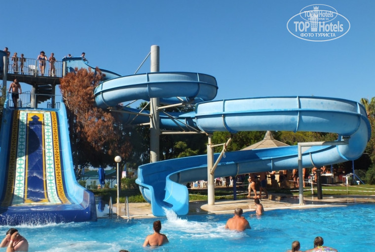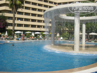 День пятый. Вечером с балкона улетело полотенце. Было очень жалко терять, т.к.это подарок мамы. Утром пошли искать. Пропажа лежала на газоне за решеткой. Пришлось просить охранника достать пропажу. Толстый турок не мог отказать двум блондинкам. Он совершил подвиг балансируя над кольями решетки перепрыгнул всем весом на газон ради моего полотенца. Получив пропажу, я поспешила удалиться, дабы не смущать беднягу, ведь ему предстоял путь обратно. Бриз на море успокаивал и настраивал на очередной релакс. Вокруг нас лежали на лежаках знакомые уже тела. Приятно мне было от того, что нас окружал контингент, как в российском санатории… Сватья повела на очередную фотосессию. В центре бассейна стояла беседка с ниспадающим потоком воды, за которым можно было скрыться.