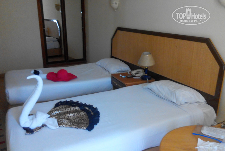 2. После обеда мы вернулись на рецепшен чтобы получить номер. Нам сразу сказали, что по фартуне будет номер выходящий на улицу и предложили за 10$ номер с видом на бассейн и с балконом. Мы согласились. Так как отдыхали мы в Хургаде не в первый раз, то стали сразу придирчиво осматривать номер: унитаз при каждом сливе выливал часть воды на пол, вентилятор в санузле не работал и там была из-за этого сырость, розетки и выключатели частично торчали из стен зияя проводами, везде была грязь и пыль, и даже не были застланы кровати. Мы на всё этого им потыкали пальцами, и нам сразу предложили соседний номер. Там всё было в разы лучше. Всё работало, всё чисто, придраться было не к чему. Мы там и остались.