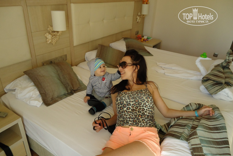 Здравствуйте.Мы молодая семья,с маленьким ребенком отдыхали в этом отеле год назад.Абсолютно не привередливые.Погодой,холодной водой нам настроение не испортишь.Но этот отель-что-то...Ехали мы ехали к этому отелю с аэропорта,приехали вечером.Персонал видя нас,туристов которые приехали с малышом не на 5,и не 10 дней,на 2 недели,заселяют нас в стремный номер без горячей воды на первом этаже.Естественно,номер с удобствами мы отстояли,нас переселил молодой человек,который должен был уволиться на следующий день.Наверное стало по человечески жалко,да и терять уже нечего.Он первым обозвал наш отель-отстоем)).Ну я не могу сказать что все уж прям все так плохо.Мне понравилось питание.Ездили в Кристал,отдали денег больше а питание уступает этому отелю.Как то по разнообразней и по вкуснее,сладости высший пилотаж!Бассейны большие,но жутко холодные,вся территория-это бассейны,они холодные,но красивые.Пляж!До пляжа не дойти под палящим солнцем,а этот вагончик всегда переполнен,который возит людей.Создаются большие очереди,потому что никто идти не хочет,там даже биседку поставили,чтобы народ не морить.Но зато на пляже стоит столовая.Не обязательно ехать обедать в главный корпус,голодным и у моря не останешься.Молодых пар мало,отель больше подходит для пенсионеров,и отдыха с детьми.Такая себе твердая 4-верка.Ах да,чуть не забыла.Рядом с отелем есть город Манавгат,он красивенный,с отличными ценами,большим рынком и классными магазинами.Я мужа уговаривала ездить туда через день.Но!!!!Лично ко мне подошла Турчанка и сказала-"Девушка,извините,вы от ребенка никуда не отходите не на шаг,вы знаете что у нас здесь деток воруют."Будьте осторожными.