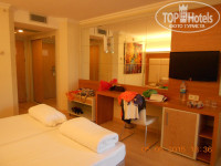 Номер: На первом этаже, вид на дорогу и местный рынок. Шумоизоляция хорошая, ни дороги, ни своих соседей мы практически не слышали. Номер комфортный, мебель хорошая, чистая, на полу ламинат. Ванная с душевой кобиной, не тесно. Сантехника чистая. Шампуни в пузырёчках, мыло в дозаторе на стене. Всё работало исправно - фен, кондиционер, телевизор-ЖК на стене, относительно большой.