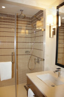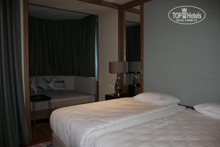 Номер в отеле просторный - состоит из огромной комнаты, панорамы вида с диванчиком, балконом. В номере присутствует все что необхоимо: полотенца, тапочки, халаты, фен (хороший), сушилки, телевизор, чайник, мини бар, особое внимание зеркалу с подсветкой как в голивудских фильмах - очень удобно его использовать.