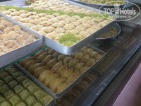 Особого внимания заслуживает питание в отеле. От всех гостей можно было только слышать : "отменная еда, супер завтрак и тд...". Качество и разнообразие еы выше среднего. Впервые в Турции встретила кашу гречневую, суши, крабов, мидии. осьминогов и тд. Вы всегда можете найти курицу в неск видах, рыбу разных видов и разных способов приготовления, мясо в разных видах, овощи и безумно много фруктов (арбузы, дыни, киви, грейпфрут, виноград, яблоки, клубника, бананы, апельсины, нектарины, персики...). Всегда ходила мимо и отмечала прекрансый сладкий стол.