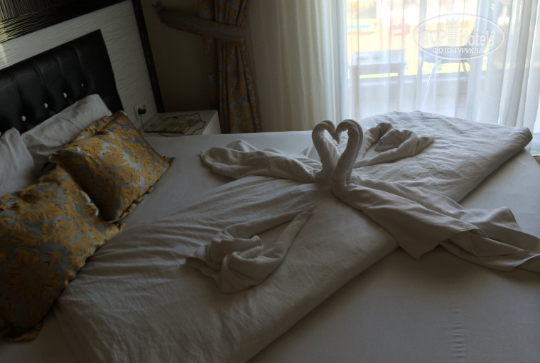 Отдыхали в начале мая с семьей,остались одни негативные эмоции.Начну с того,что заселение было долгим.хотя если это были турки -их заселяли сразу. Через час нас заселили и то после того,пока мы сами не стали маячить на ресепшине и просить заселения . Номер,в который поселили был неубран и на протяжении двух недель в номере у нас убрались один раз (полы помыли пока не попросили сами это сделать ) т.к. Вся уборка у них заключается в выносе мусора и принести водички.НО три раза нам делали лебедей-спасибо было приятно ,это за 2 нед нам три раза поменяли белье( Что касается еды- выбор большой,всегда есть и рыба и курица и индейка ,рис,спагетти,картошка Фри тоже всегда ,но это было так невкусно,за все время отдыха вкусно было только два раза в турецкую ночь по четвергам,но нужно было выстоять очередь,чтобы вкусно покушать.из фруктов только яблоки и апельсины-на этом все!Официанты - молодцы стараются,всегда приветливые и доброжелательные.
