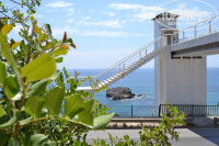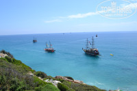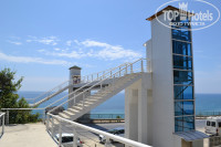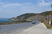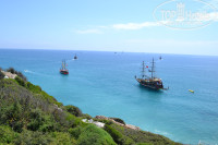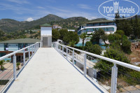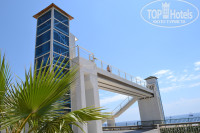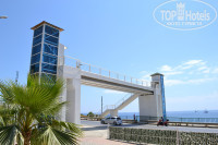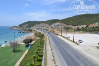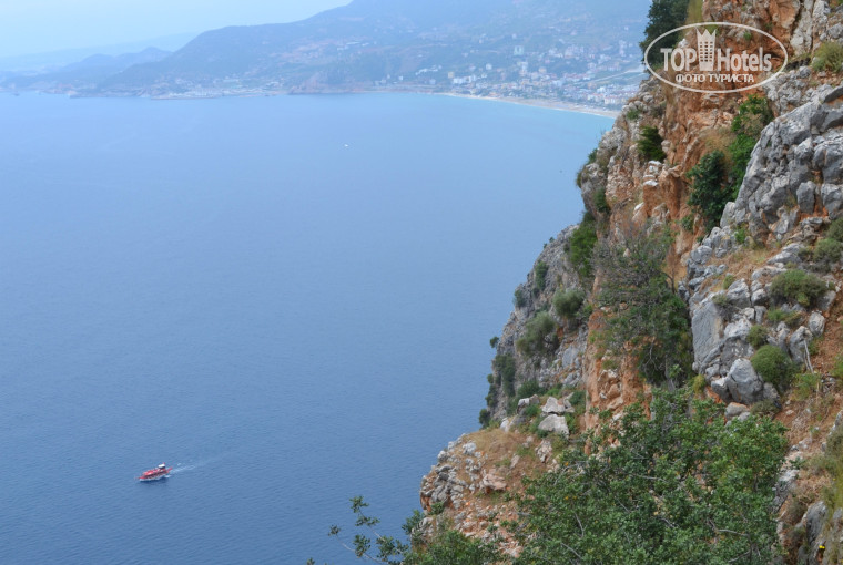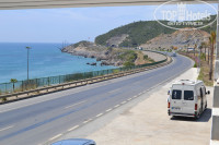 Виды у отеля с эстакады,над автомобильной трассой, очень красивые: отвесные скалы,тоннель,море,остров. Я бы назвала такой экстерьер изюминкой отеля. Лифты работают-хочешь,пешком бегай,хочешь-на лифте. На пляже: лежаки,матрасы,тенты,локальные зонтики, пирс. Заход песчано-галечный, есть небольшая платформа. Минус-встают на якорь яхты с морской прогулки, один раз измазала ступни в мазуте,пришлось жидкостью для снятия лака оттирать.Душ,туалеты,женский-вообще шикарный,большой, зеркала во всю стену.Бар-наливают пиво,колу. Лепешечки печёт турчанка.