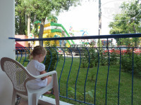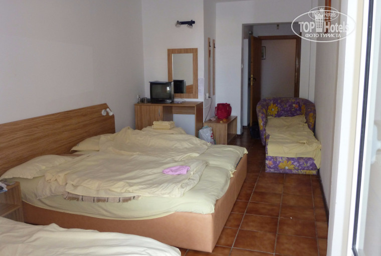 Отдыхали в июле.Главный плюс-близость к морю.Для тройки нормальные номера и нормальное сытное питание,максимально приближенное к русской кухне,желудки были в порядке и у детей тоже, доче 2 года и для нее было ,что поесть.Сервис более менее сносный.Все рядом,магазины,бары,атракционы,вообще под самым окном.Отдыхали там в основном немцы,болгары и еще какие-то не русские.Обслуживающий персонал много цыганочек. Персонал большинство говорят на русском.Плохая шумоизоляция,тяжело заснуть,учитывая,что вся развлекательная инфраструктура ну очень близко.Если не заморачиваться,то все нормально.
