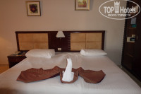 -размещение -прилетели около 9 часов утра по местному времени.Сказали что браслеты выдадут в 12:00,а заселят в номер к 14:00-ну в общем по европейским стандартам.Получив браслеты,не выдержав ожидания,дали 20$ на ресепшине и нас тут же заселили в 4-ый корпус.Номер огромный,две больших кровати + раскладной диван(видимо номер рассчитан на троих).Огромный балкон.Мебель в номере подуставшая и не помешал бы косметический ремонт.В целом по номеру претензий нет.Туалет и ванна чистые,вода горячая была круглосуточно.Номер убирали хорошо.