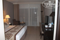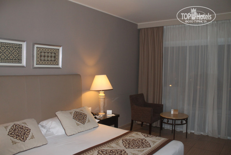 Номер бронировали супериор. Его и получили. (1322 на втором этаже с видом на дорогу и соседний отель и боковым видом на море). Номер понравился: светлый, чистый. Большая двуспальная кровать, удобный матрац. Кондиционер работал исправно с выставлением желаемой температуры. В номере стоит плазма с тремя русскими каналами, смотреть по которым абсолютно нечего. Есть вход usb и hdmi. Мы подключали ноутбук к телевизору и смотрели заранее закаченные на него фильмы. На столике есть чайно-кофейный набор: чашки, стаканы, чайник, чай, кофе, сахар в пакетиках, что очень удобно. Каждый день в номер ставится 1,5 литровая бутылка воды. Мини-бар платный (по 2$ за бутылочку). Фен слабоват, поэтому не пожалела, что взяла свой. В ванной комнате обновляют гель для душа, шампунь и кондиционер для волос (брать лучше свои, от отельных волосы спутываются). Сейф был закрыт. Я так поняла, что они его кодируют, чтобы потом туристы обратились и за чаевые они его открывают. Поскольку сейф легко снимается с блока при изъятии батареек, что означает, что каждый может его открыть, мы им не пользовались, а придумали другое «хитрое» место для хранения денег Уборка номера производилась исправно, белье менялось, полы мылись, стекла и все поверхности натирались. Нареканий никаких не возникло.