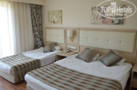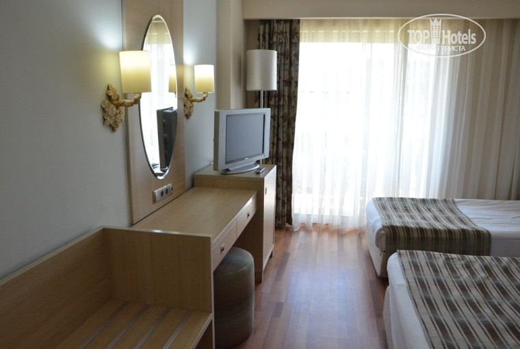 Номера после ремонта, на полу ламинат, балкончик небольшой. В принципе все хорошо. Фен работал, кондиционер не сразу у нас заработал, так как он центральный, они как то сами все регулируют. Если бы не одно но, уборка номера ужасна. За все 10 дней что мы тут были полотенце меняли 2 раза, и то второй раз только после моей записки на турецком!