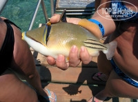 Есть приотельный риф с огромным кол-вом рыб самых разнообразных, прикормленных отдыхающими. Бесплатный снорклинг со своей маской и трубкой в режиме нон стоп, как приложение к отелю)) газоны зеленые, пальмы, территория ухоженная. Вдоль лагуны и выхода в море есть душевые стойки. Есть маленькая детская площадка. При отеле есть дайвинг клуб (в конце левых корпусов со стороны моря), за 25 долларов можно погрузиться на 9 метров возле рифа около отеля. Видели даже два раза проплывающих дельфинов вдоль приотельного рифа, очень близко...это было круто...