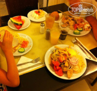 Еда в отеле очень вкусная, мы реально обжирались. Кормили нас вроде так: завтрак - американский стол, обед/ужин - шведский стол, кухня вся очень достойная и разнообразная. Ребенку с утра очень нравилась каша рисовая))