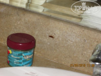 1- номера- нам дали номер 243 на втором этаже с большим общим балконом с видом на магазинчики, номер маленький, грязный, в номере присутствует дверь с выходом в другой номер, но хорошо еще,что эта дверь была закрыта. звукоизоляция ужасная- все,что делалось соседом в другой комнате-кашель,чиханье,"пердеж"-все это было слышно! вода в душе-лилась маленькой струйкой и только после звонка на ресепшн нам сделали душ и то-все равно мыться нормально невозможно-везде чьи-то длинные волосы, все грязное. а в последние дни в ванной были обнаружены несколько тараканов. фото выше.