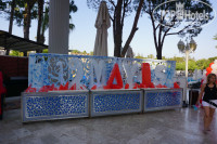 Территория отеля: Такого красивого отеля, как этот нужно поискать. Мы целыми днями наслаждались видом на горы. Территория отеля большая и зеленая. Не смотря а ее внушительный размер, все продуманно так, что не возможно потеряться и можно отпускать деток самих бегать из детского клуба к родителям на пляж или еще куда либо))). Пляж, большой, поделён на три зоны. Но какой смысл в каждой зоне, мы так и не поняли. Пляж галечный, крупная и мелкая галька. Ногам ходить больно. Мы первые два дня ходили по камушкам, это полезно, но в дальнейшем ходить уже стало не возможно. Эту проблему мы решили, приобретя специальные тапочки. На пляже не радовал один момент, курящие люди. Курят все на своих лежаках и в огромном количестве. Огромная просьба к отелю организовать отдельные места для курения, так как многие с детками, приехали наслаждаться чистым воздухом, а не сигаретным дымом. Хочу заметить, что данный факт возмутил не только меня. За территорию отеля ставлю 5