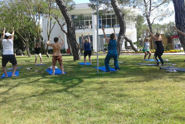 Ребята из анимационной команды молодцы! Заряжали позитивом. Спасибо Марине за утреннюю йогу и пилатес, а также за зажигательную Зумбу. А так же спасибо ребятам Маше, Жене, Насте, Кире и Мухамеду.