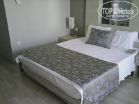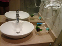 Мне достался прекрасный номер на третьем этаже - просторный (за время отдыха ни разу не ударилась об угол стола или кровати как это обычно бывает в гостиничных номерах из-за тесноты), с удобной кроватью king size, дополнительным раскладным диванчиком, достаточно вместительным платяным шкафом и французским балконом с видом на море. Здесь можно было и стоять, и сидеть на пуфике, поэтому неудобств из-за компактности балкона я не ощутила. В номерах свежий ремонт, на полу - новый ламинат, на стенах - красивые обои спокойных тонов, пока нигде нет ни пятен, ни царапин. В ванной комнате имеется и переносная душевая лейка, и прикрепленный к стене душ. Постояльцам предлагается стандартный набор гигиенических средств - гель, шампунь, кондиционер, мыло, шапочка для волос, пилочка, ватные диски, палочки, а также тапочки и рожок для обуви.