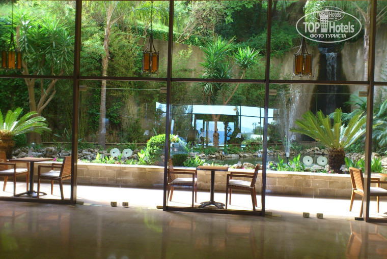 Совершенно замечательная Тамара на гест-релейшен помогла быстро сориентироваться на местности, проводила по территории и все показала нам, предложила завтрак за доп. плату, т.к. наш "AI" начинался с заселения, а до него было еще довольно долго. Мы согласились, "под белы ручки" в ее сопровождении и под ее чутким руководством были препровождены в ресторан на 10-м этаже, где впоследствии завтракали и ужинали с удовольствием поглощая местные и не местные яства. Тамара еще потом извинялась, что выбор не очень велик (сезон еще не настал да и кризис видимо сказывается), но нам было достаточно, мы не голодали, я наелась вволю ананасов на завтрак и сыра, по-моему, это был "Дор Блю" (а если и не он, то очень похож) на обед и ужин. Кофе, молоко и/или маленький чайник с кипятком для заваривания чая на завтраках приносят официанты, как и любые напитки за обедом, в остальном - шведский стол. Обслуживание по меню в полной мере осуществляется в рестране "А-ля карт" (у нас было 1 посещение бесплатно по записи).