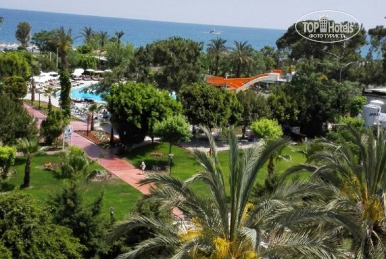 Территория отеля среднего размера, ухоженная и очень красивая. По соседству есть небольшой базарчик (для любителей прикупить сувениры). Сам отель заслуживает хорошей оценки. Чистота, современная обстановка, уборка комнат ежедневная (не зависимо от чаевых, я проверяла - оставила чаевые только в середине отдыха) :) На ресепшене почти всегда можно найти администратора Наталью, которая охотно поможет и подскажет, если возникают какие-то вопросы. Шведский стол очень разнообразный, если блюдо заканчивалось, то тут-же приносили новую порцию. Подавались блюда на любой вкус! В меню ежедневно были несколько видов мяса и рыба. Что касается завтраков, то тут разнообразие меню думаю могло угодить всем! несколько видов йогурта, каша, 3 различных блюда из яиц, сыры, колбасы, фрукты. Персонал вежливый и обходительный. Бармены всегда готовы сделать вкусный коктейль! Особая благодарность анимационной группе (Ilhan, Eren, Ilker, Hussein, Roberto) за весёлый отдых! Для детей организован мини-клуб. Куда они с большим удовольствием ходили. Анимация для взрослых тоже весьма разнообразна! Гимнастика на траве, аквааэробика, конкурсы у бассейна и в бассейне! Стрельба из лука, из ружья, дартс, петанк. Вечером обязательное диско для малышей, а после развлекательная программа для взрослых также с конкурсами и представлениями. Очень понравилась "Турецкая ночь". Особенно хочу отметить приглашенных танцоров из Колумбии (кажется)! Отдыхающие, открыв рты, смотрели на танцоров, а потом долго аплодировали стоя!
