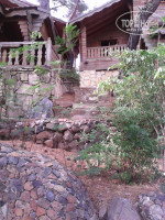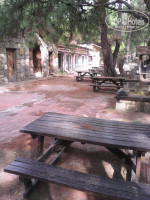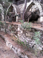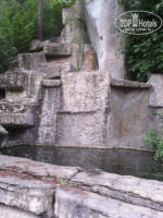 Отель, с такой знаете, концепцией экологического отдыха, есть и традиционные корпуса, но большая часть территории застроена деревянными домиками, один из которых построен вокруг сосны (ну наверное не один, я не во все домики залезала)). По месту где постояльцы питались можно предположить, что питались они натурпродуктами, загоны для некрупной живности, мини молочная ферма, даже пробирки до сих пор стоят, И в целом ощущение, что люди встали и ушли все одновременно) где-то неделю назад. Отель пустует три года. В номерах стоит техника, весят вешалки и полотенца, ну кухне ковшики и терочки, в каминах лежат дрова. Лучше пойти утром, т.к. морской ветерок туда не достает, днем Вам будет жарко, возьмите воды и обуйте спортивную обувь, старайтесь идти не лестницами а тропинками, так больше увидите. В период работы отеля там действовал фуникулер, сейчас Вам придется сделать несколько кругов по горе, чтоб добраться до верха. Но мы не пожалели).