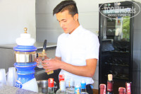 Теперь о территории, почти все строения это жилые корпуса их на 30 000 квадратных метров около полутора десятков. Вся территория зелёная и довольно ухоженная. Много ступенек . наверное людям с ограниченными способностями будет здесь трудновато. Но в моём опыте было и сложнее. Пляж рядом, вход в море как будто специально для детей(мелко и песок). Нам взрослым было неудобно. До глубины метров 50-70. Время работы и ассортимент бара на пляже не сильно напрягали. С утра мы были на море а после обеда перемещались к бассейну.
