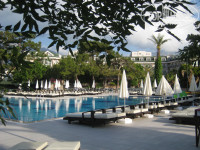 2. Размещение. Приехали после обеда, поэтому ключи дали сразу. На ресепшине все хорошо говорят по-русски, это в дальнейшем позволяло решать оперативно все вопросы. Взяли номер без балкона и очень переживали. Номер конечно, не большой, но все необходимое есть, окно выходит на море, и вся мебель новая. Смутили открывающиеся двери в соседний номер, видимо до ремонта отеля, это был двухкомнатный номер и отсутствие возможности сушить одежду. Минибар заполнялся только при заселении. Все принадлежности для душа и хороший фен есть в каждом номере. Посмотрели все соседние номера. Номера с балконами больше, есть кресло и возможность на французском балконе высушить вещи. Номера на первом этаже , с выходом в сад, имеют большие балконы, что позволяло на них желающим заниматься йогой, или просто посидеть на креслах на свежем воздухе. Нам не повезло с сервисом, за 11 дней убрали номер 3 или 4 раза, столкнулись с этим впервые, но читая другие отзывы, понимаю , что видимо нам просто не повезло.