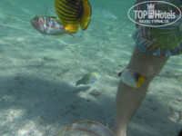 Территория отеля, большая, зеленая, очень красивые кактусовые рощи, как я их назвала. Гуляешь от бассейна до моря как в ботаническом саду. Ухоженная. Пляж - около берега по пояс в самом глубоком месте - деткам купаться удобно. Рыб полно - тем, кто не ныряет с понтона - и у берега есть на что посмотреть. Лежаки у моря все практически заняты.