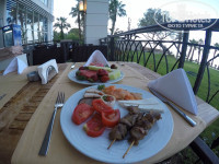 ПИТАНИЕ. Тема очень неоднозначна. То питание, которое для одного человека будет отличным, для другого будет скудным. Нам понравилось. Большой выбор оливок (однажды на завтрак мы насчитали 12 видов), море сладостей, фруктов (клубника, арбузы, дыни, персики, нектарины, абрикосы, яблоки, апельсины, киви и какой-то заморский неизвестный нам фрукт)))). Овощи, зелень, много холодных закусок, салатов и т.д. За 8 дней мы с мужем добавили в весе по 2 кг каждый. Ужас. Как не хочется после такого изобилия садится на диету((( Официанты приветливы. Мы обычно выбирали столик на улице, нас обслуживал официант Фатих - быстрый, почтительный, приятный молодой человек. А из барменов очень понравился Сэфа - столько энергии и жизнерадостности в человеке.