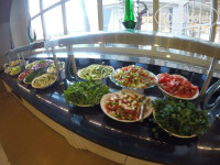 Рядом находится БАР с напитками и мороженным. Здесь же есть и еда для тех кто проголодался в промежутке между завтраком и обедом или обедом и ужином. Ассортимент меньше, чем в основном ресторане, но выбор все равно большой.
