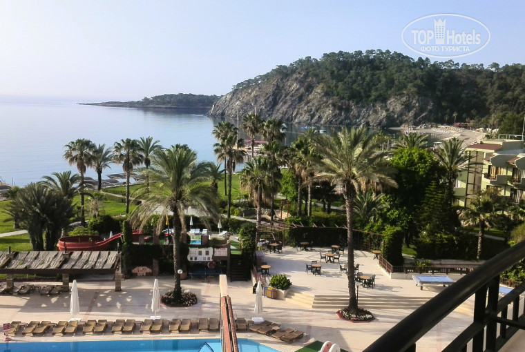 Территория не большая, но красивая. За территорией отеля деревня, есть палаточки с сувенирами, одеждой, фруктами, брали клубнику, черешню и дыню, все очень вкусное. Еще есть за территорией, не далеко от отеля, заброшенная гостиница на горе, с нее просто потрясающий вид на море и наш отель. Ездили на рейсовом автобусе в кемер погулять и по магазинам походить.