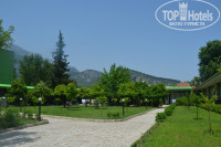 Территория вся зеленая. Приятно пройтись. На ресепшене есть чай, когда бар уже не работает.