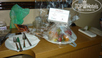 Немного о нашем заселении. Побывав в отеле в прошлом году, мы знали в какой части отеля хотели бы жить. В ваучере у нас было написано, что мы постоянные гости и просьба предоставить нам номер на выбранной стороне. Приехали мы в отель около 10 утра. Отель был забит под завязку и нам временно предоставили номер 308 с видом на сад. При этом сказали, что ночью будет большой отъезд из отеля туристов и попросили подойти на следующий день после завтрака. Что мы и сделали, и соответственно нам предоставили номер 237 с видом на главный бассейн (как раз это мы и хотели). За смену номера ничего не доплачивали. И в номер 308 и в номер 237 нам присылали тарелку с фруктами.