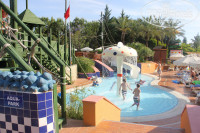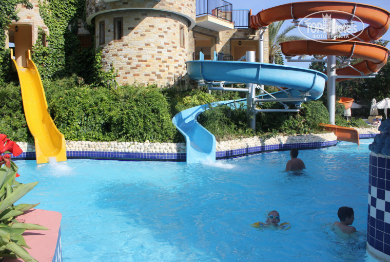 Территория отеля большая, ухоженная, красивая. 1 бассейн-релакс (тихий) + 1 большой бассейн с 3-мя горками, где проводят анимацию, + детский бассейн с 3-мя маленькими горочками.Отдельно - аквапарк с 8-ю разными горками. Есть мини-клуб (мы не были) и детский городок (очень маленький).