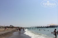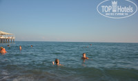 - Море в 300 м от основного здания. Идти комфортно. На песочном пляже очень много лежаков под единым тентом. Есть переодевалки и душ для обмыва тела и отдельно для ног. Пляжная зона обустроена деревянными дорожками-помостами. Ногам комфортно. В центре пляжа стоят холодильники с бутылками с водой по 0,33 л. Удобно очень! В море есть пирс с баром и диванами. Удобно с пляжа туда за напитками бегать по горячему настилу. Муз.оформление там- см. в минусах.
