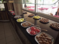 отличный отель , питание хорошее убирали в номере каждый день .в номере телевизор с русскими каналами,кондиционер, в душе фен, мыло и шампунь. Все чисто постельное ,полотенца. Персонал очень приветливый понимают и говорят по русски. отель имеет 3 корпуса 2 бассейна вода чистая не пахнет хлоркой. есть горка . Напитки у бассейна были всегда водка ,пиво,вино,кофе и напитки бармены всегда приветливые .