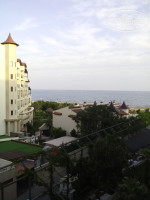 Жили мы в главном корпусе на 4 этаже, окна с боковым видом на море.Номер очень уютный:большой шкаф с кучей плечиков,в нём сейф(бесплатный),новый телевизор,холодильник,зеркала,пару стульчиков и небольшой столик всё очень мило,но есть одно "но" кровати в номере одна двухспальная и одна односпальная,а приехали: я ,мой 11 летний сын и моя мама,пришлось одной из нас спать с ребёнком.хотелось бы что бы были номера с 3-мя односпальными кроватями,представьте если приедут 3-е мужчин,для нас это не принципиально,так просто к сведению.Кондиционер,если честно вообще не поняла как он работает,при открытии балкона он выключается,но это понятно,днём нас почти не было поэтому мы и не пользовались(без карточки от номера он не работает),а вот ночью по моему где то к 4-м утра он выключается,поэтому мы всегда открывали балкон.В ванной: фен,весы,душевая кабина и т.д.На балконе столик ,два стульчика и сушилка.
