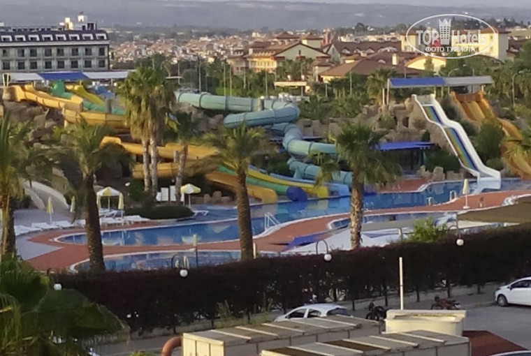 Аквапарк находится на территории отеля голден бич ,он на два отеля ,места там всегда есть,работает бар,из алкоголя там только пиво,в 12 там можно перекусить.