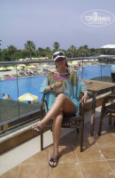 Отдыхали в этом отеле с 21.05.2015 по 31.05.2015 двумя семьями.Зарегестрировавшись здесь на сайте и отметившись в графе "Я еду в отель" попросили заселить нас рядом.Приехали мы около 14 часов,и хотя почти весь автобус ехал в этот отель,заселили нас очень быстро.Руско-говорящая девушка на ресепш сразу объяснила нам,что и как,выдала ключи от номера(мы попросили два),карточки на полотенца(полотенца кстати бесплатные,ни какого залога оставлять не надо),и карточку на алкоголь ultra all ,рассказала про мини бар,он в отеле бесплатный(каждый день 2 сока,2 минералки,2 воды).Нас как мы и просили заселили рядом,через номер и ещё был комплимент от отеля в виде тарелочки фруктов,мелочь,а приятно.