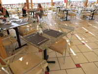 - рестораны, бар на пляже - очень большой минус - столы сервируются только перед открытием ресторана - после - это просто ужас - столы убирают очень медленно, да же если унесли грязную посуду, забывают вернуться, вытереть стол и сервировать его снова для других посетителей - приходится ходить за мини, просить, и ждать... а если не хотите ждать идите сами за приборами или барите не тронутые приборы за другими столиками. Пепельницы просто забывают чистить - подходишь к сервированному столу - а там грязная пепельница с окурками, очень часто отсутствуют соль или перец. Мы так и не смогли понять почему на столы не ставят салфетки и зубочистки. Салфетки и зубочистки в основном ресторане приходилось брать самим при входе в ресторан.
