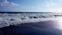Вода очень теплая, но волны большие, страшно заходить в воду. Дно не понятное, какие то камни, вроде стоишь на песочке, делаешь шаг в сторону и проваливаешься в бездну. С территории отеля подземный переход на пляж, идти 1 минуту. Есть бар на пляже, навес, лежаки, пляж только для гостей отеля.