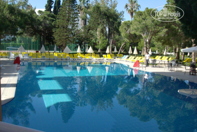 Отдыхали мы с сыном-подростком в конце мая-начале июня.Приехали мы в отель в 8 вечера,поэтому заселили нас сразу без проблем.Номер был в основном корпусе,третий этаж по нашему.Окна выходили на детский бассейн и сосны.Ночью было тихо,комары в номере были замечены только в первую и последнюю ночь.В номер можно подняться как на лифте,так и по лестнице.Ещё можно подняться по лестнице от бассейна.Номер был на двоих с раздельными кроватями.Балкон с пластиковым столиком и стульями.Есть сушилка.В ванной гель для душа,шампунь,мыло,фен.В номере убиралась каждый день турчанка.Минибар пополняла водой,застилала кровати.Полотенца меняла,если бросали их на пол,иначе просто складывала на полочку.В номере есть электронный сейф-3 доллара в сутки,но мы им не пользовались.Телевизор-3 русских канала-один наш 1-й для Германии,второй ТНТ и ещё какой-то.Остальные на немецком,франуцузском и итальянском языках.Найти легко-есть инструкция где какой канал. Кондиционром не пользовались-хватало открытого балкона,ночью даже спали под одеялами.