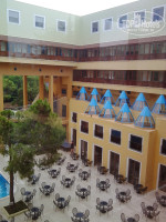 Позволю себе воспользоваться отзывом туриста Ярослав .Он провёл небольшое исследование по номерам отеля. "Кому важно, в какие номера селиться, составил их полный перечень. Система такая: номера 10ХХ – 1-й этаж, 20ХХ – 2-й, 1ХХ – 3-й, 2ХХ – 4-й, 3ХХ – 5-й; 6ХХ, 7ХХ и 8ХХ – соответственно, 1-й, 2-й и 3-й этажи дополнительного корпуса. Окна на дорогу и соседний отель: 1001-1005, 2001-2007, 101-119, 201-219, 301-313. Окна на детскую площадку и допкорпус (достаточно тихо и зелено): 120-141 (при этом 128-141 выходят на трансформатор, шумит), 227-248, 322-334. Окна на бар (вечером может шуметь анимация): 220-226, 314-321. Окна на север (ничего плохого): 335-339."Это про основной корпус.В Гардене всего два этажа,внутри не была,но расположен он так что одна сторона выходит на детскую площадку а другая на прогулочную дорожку к торговым рядам.