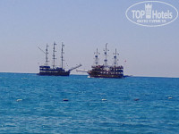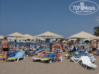 До пляжа ходит шатл раз в полтора часа.Если есть свободные места может подбросить и шатл другого отеля.По дорожке идти 8-10 минут.Дорога совершенно не напрягает,идёт мимо сосен и эвкалиптов.Можно и нужно идти и дышать прекрасным воздухом.На пляже к 9 утра народу уже довольно много.После обеда поменьше.Лежаков всем хватало.Полотенца пляжные выдают в хамаме по карточкам.Карточки брать на ресепшн.Меняют раз в три дня,бесплатно.Есть зарядка,волейбол,детские горки.Немцы в основном загорают у бассейна,поэтому на пляже много русских.Начиная с июня,русских стало много,на пляже звучала в основном русская речь.Песок галечный,мелкий.Заход в море не очень крутой,галька в море мелкая.Плита ближе к водной станции.На пляже есть бар,там можно перекусить,если лень идти в отель.Женщина печёт лепёшки.