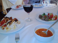 В ресторане очень много разнообразной еды.На завтрак жарили яичницу с начинкой и без.Всегда были вареные яйца,мюсли,хлопья,шоколадные шарики.Молоко.Были сосиски,колбаса-очень своеобразные.Брынза,сыр косичка.Разнообразная зелень,овощи-огурцы,помидоры,капуста,перец.Яблоки,апельсины,грейпфрукты,арбузы,дыни.Оливки,смаслины,разные соусы,оливковое масло.На первое были супы,но в основном томатные с разными добавками.На второе тушёные брокколи,макароны,рис,картошка в разных видах.Кабачки,баклажаны.Мясо-в основном курица жареная или кусочки курицы в соусе.Были фрикадельки,рыба.На гриле жарили рыбу,мясо,печень.Очень много сладостей,торты,пицца,будочки,мёд,розовое варенье-всего не перечислить.Из напитков разные виды чая,кофе ,шоколад.Спрайт,кола,соки из автомата.Свежевыжатые соки по 2 евро.Пиво не пробовала,ничего сказать не могу.Вино-турецкое.Белое,красное,розовое.Мне больше понравилось розовое. Для маленьких детей есть стульчики,микроволновка.В баре у бассейна в 16-00 чай с выпечкой.В холле сок и сладости.В общем голодными не оставались.Единственное пожелание-побольше национальных турецких блюд в меню.